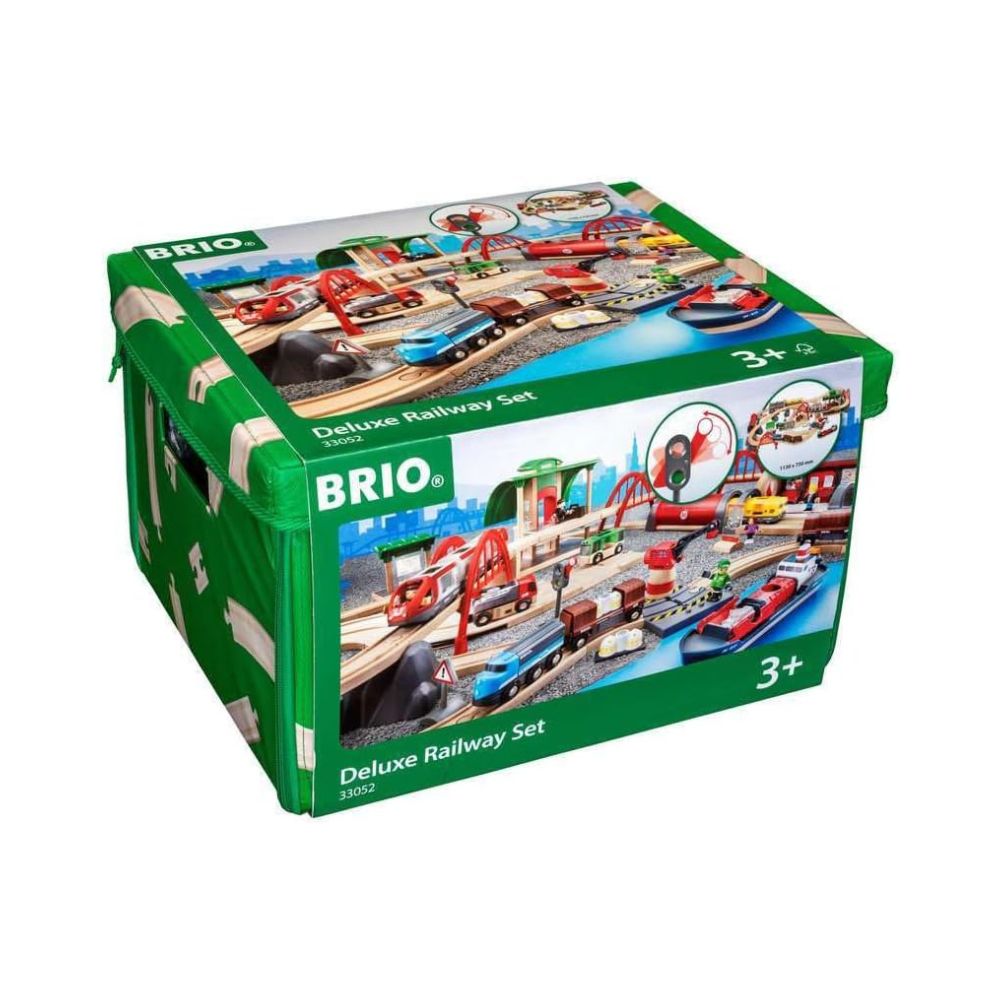 The ultimate BRIO World rail and road set – this 87-piece 33052 Deluxe Railway Set comes complete with passenger trains, freight trains, harbor and metro scenes, stations, cranes, bridges, road and rail tracks, figures and more. Full of action and adventure, this BRIO World set helps children explore the world around them in a fun and educational way.